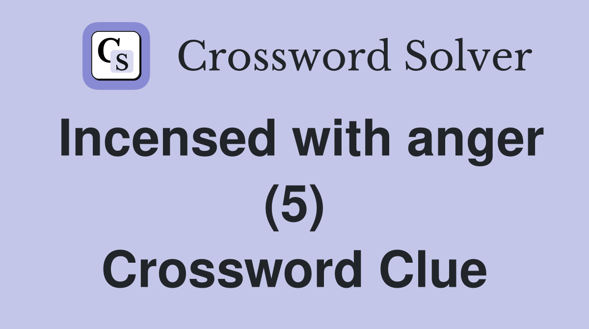 Incensed with anger (5) Crossword Clue Answers Crossword Solver
