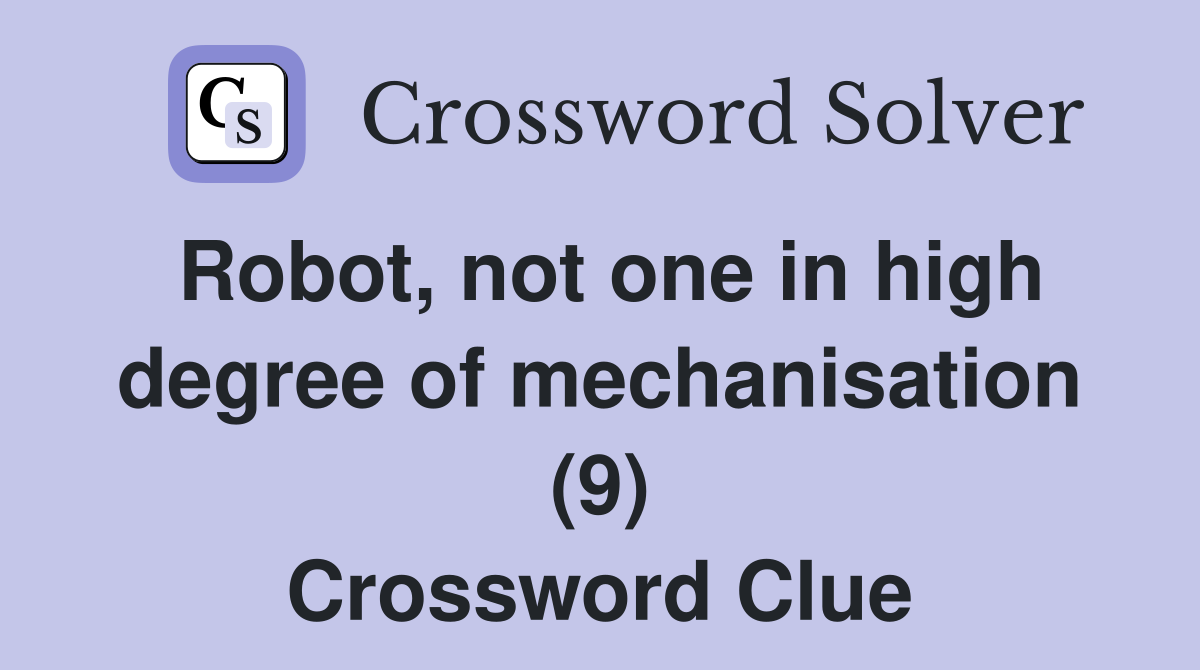 Robot not one in high degree of mechanisation (9) Crossword Clue