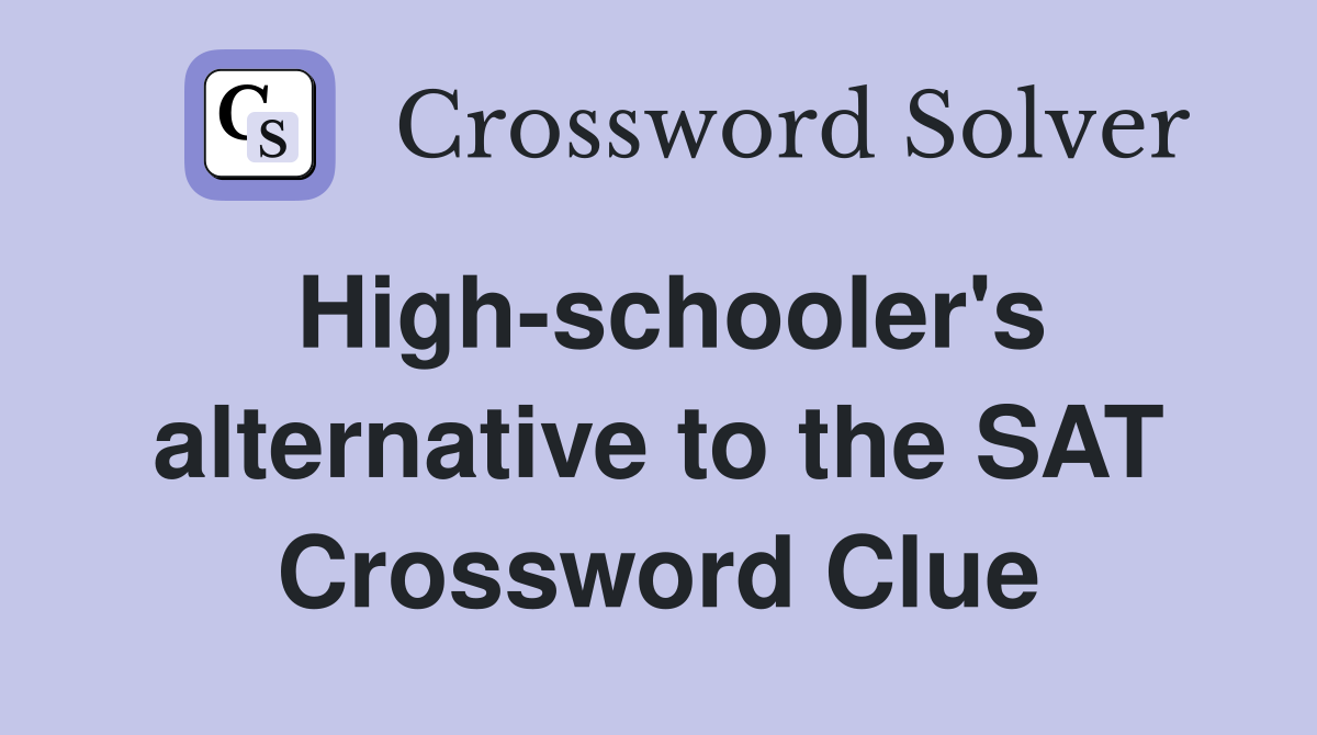 High schooler #39 s alternative to the SAT Crossword Clue Answers