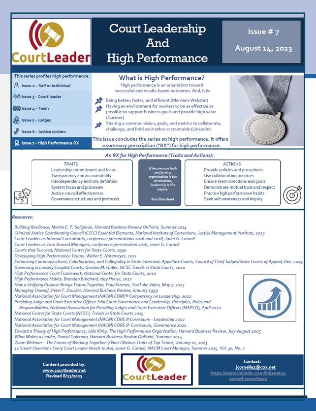 Court Leadership and High Performance A Prescription (an RX ) for