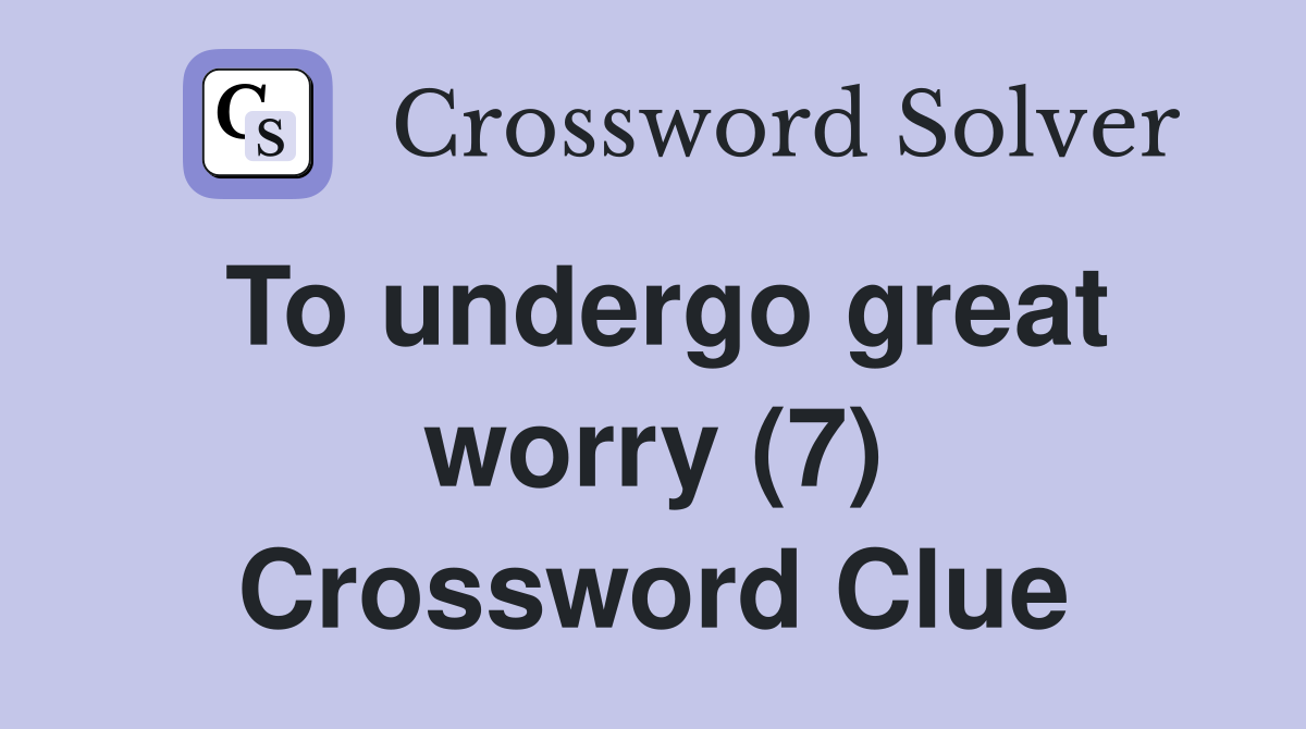 To undergo great worry (7) Crossword Clue Answers Crossword Solver
