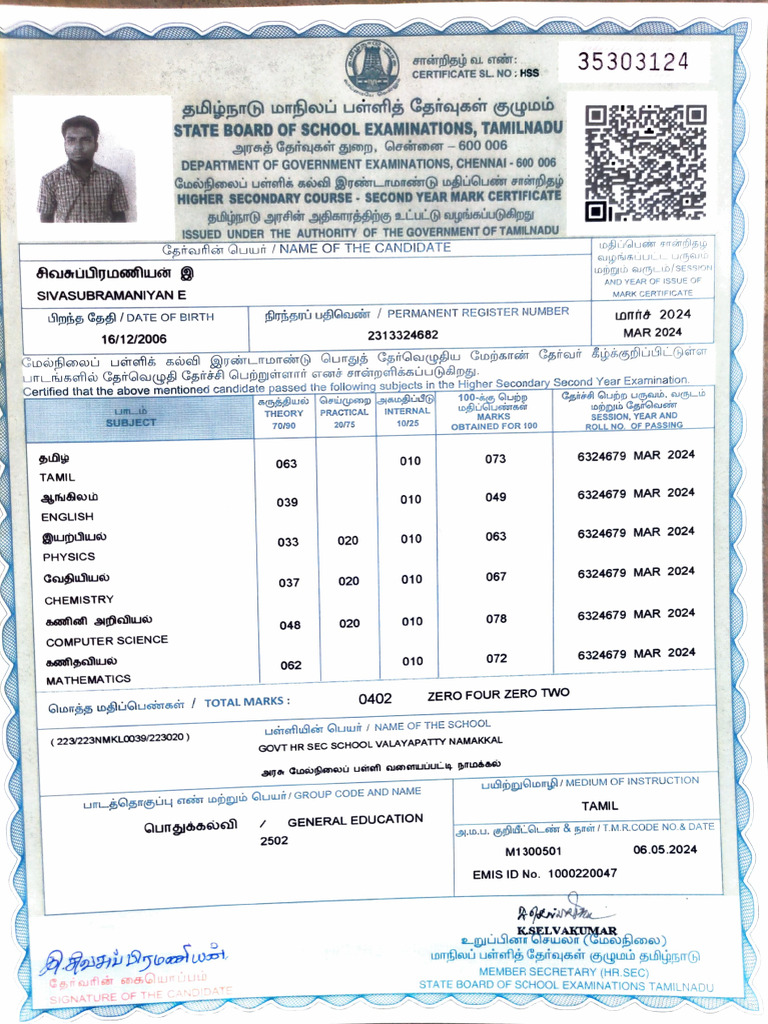 State Board of School Examinations Tamilnadu: Higher Secondary Course