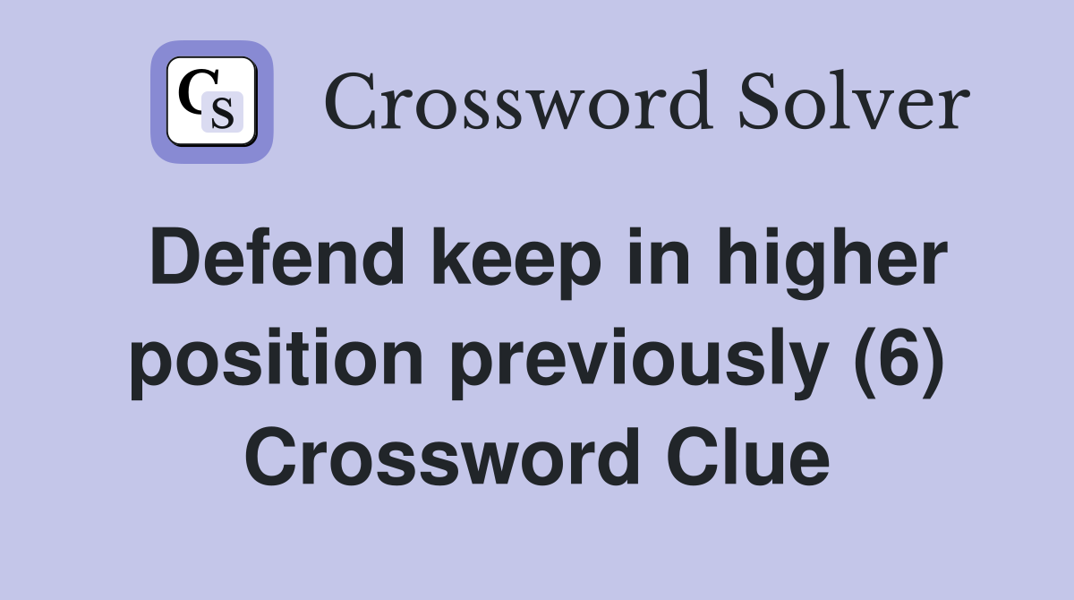Defend keep in higher position previously (6) Crossword Clue Answers