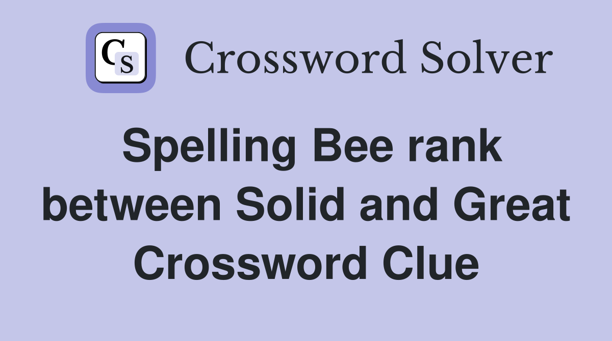 Spelling Bee rank between Solid and Great Crossword Clue Answers