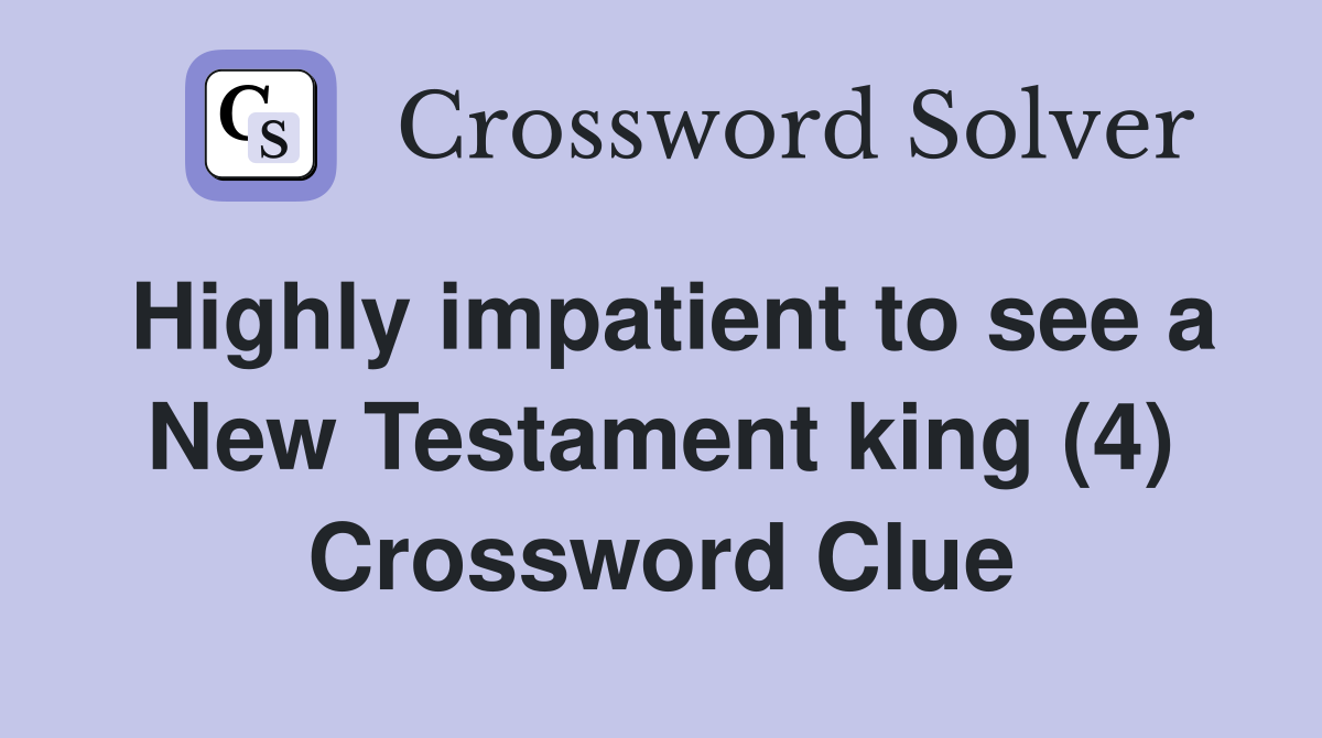 Highly impatient to see a New Testament king (4) Crossword Clue
