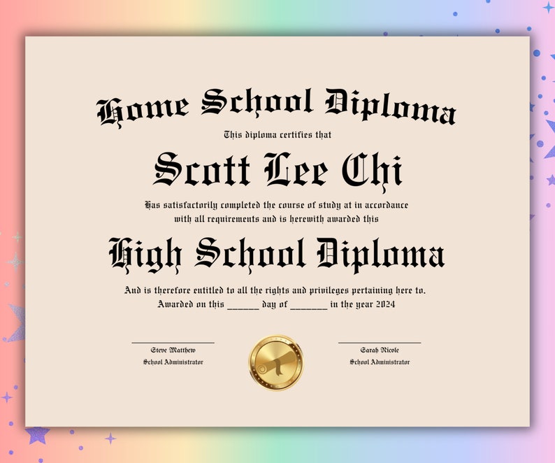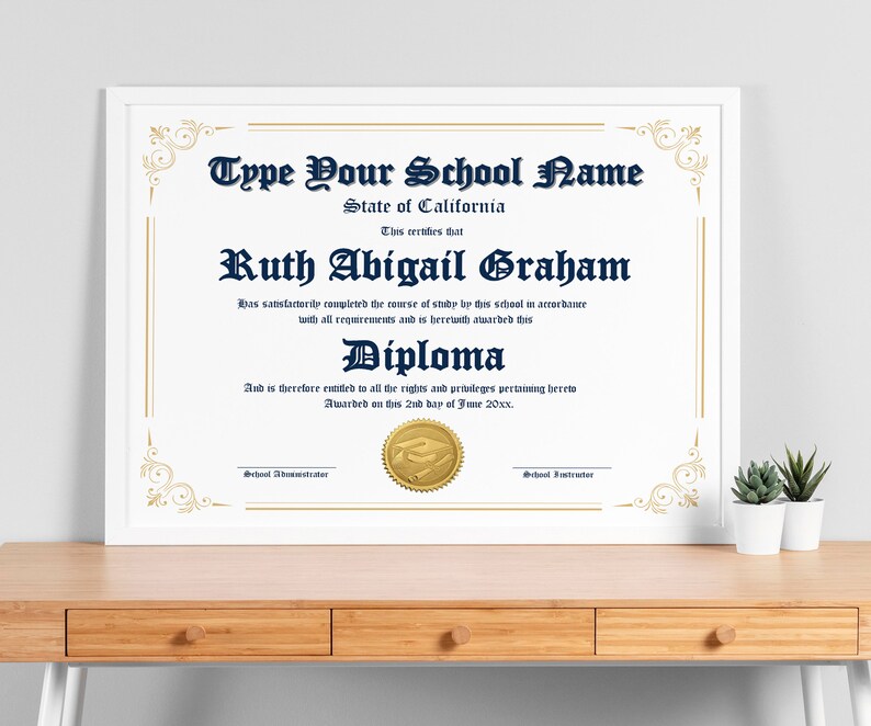 DIY Editable Diploma Custom Highschool Diploma Homeschool Diploma