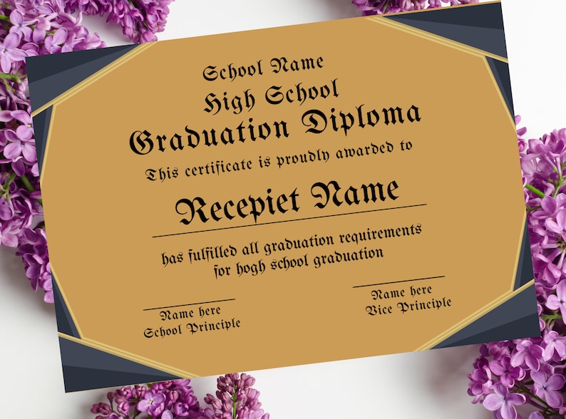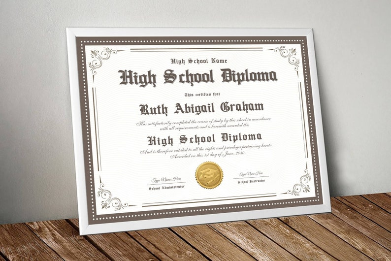 Highschool Diploma Template Highschool Graduation Graduation Etsy