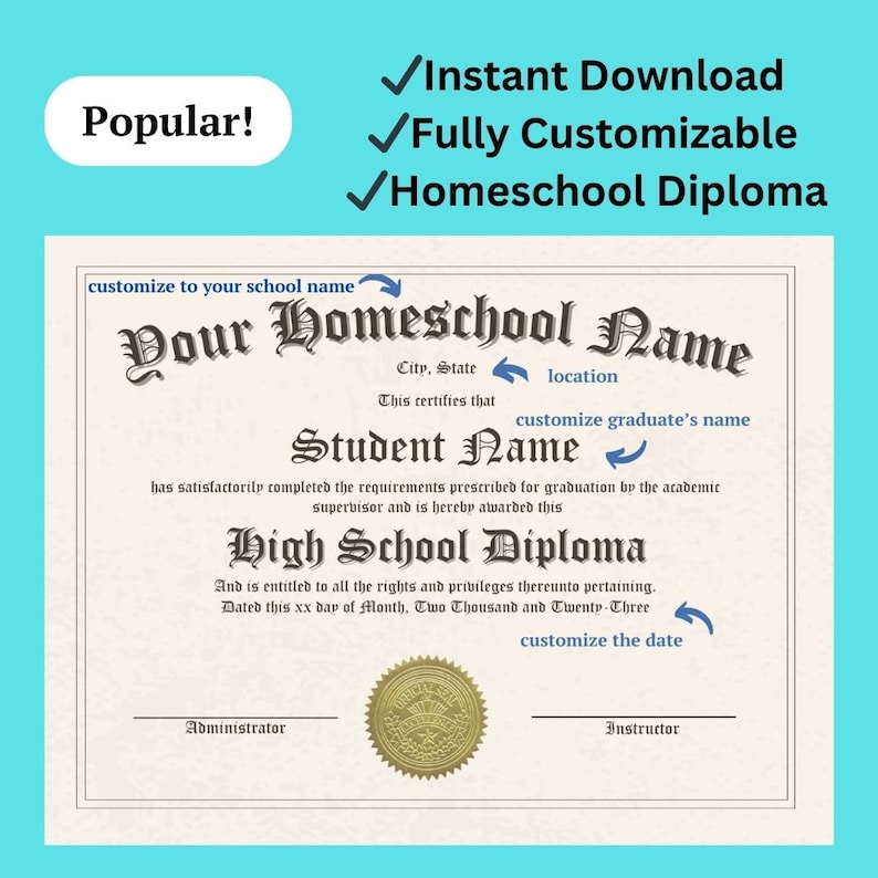 Custom Diploma Highschool Diploma Homeschool Diploma Customizable