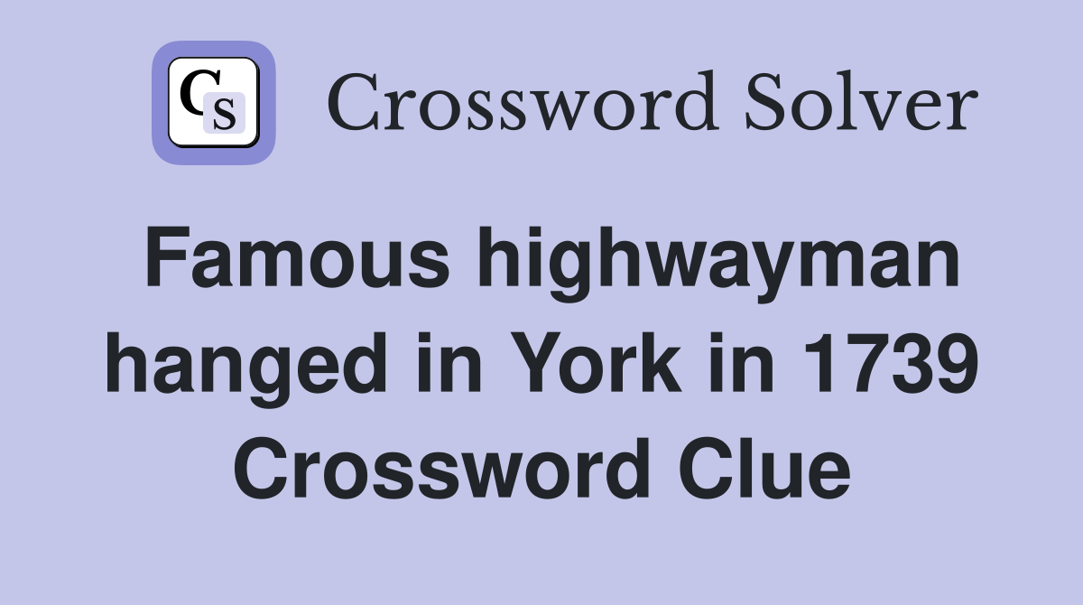 Famous highwayman hanged in York in 1739 Crossword Clue Answers