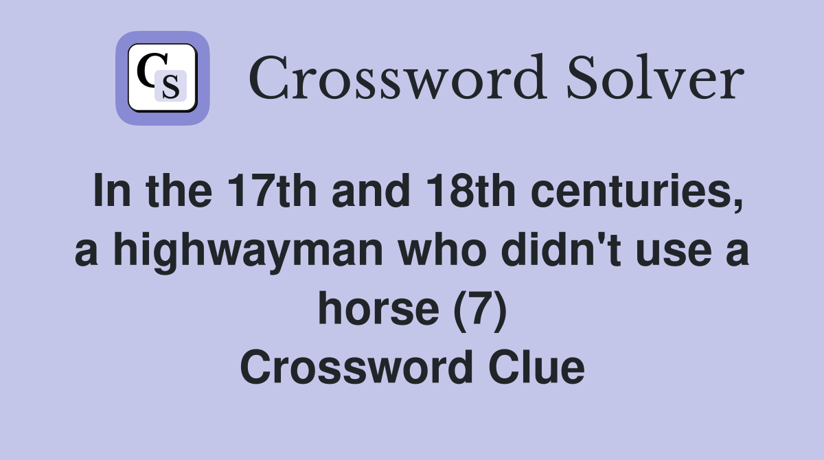 Highwayman crossword clue TheSunCrosswordAnswers co uk