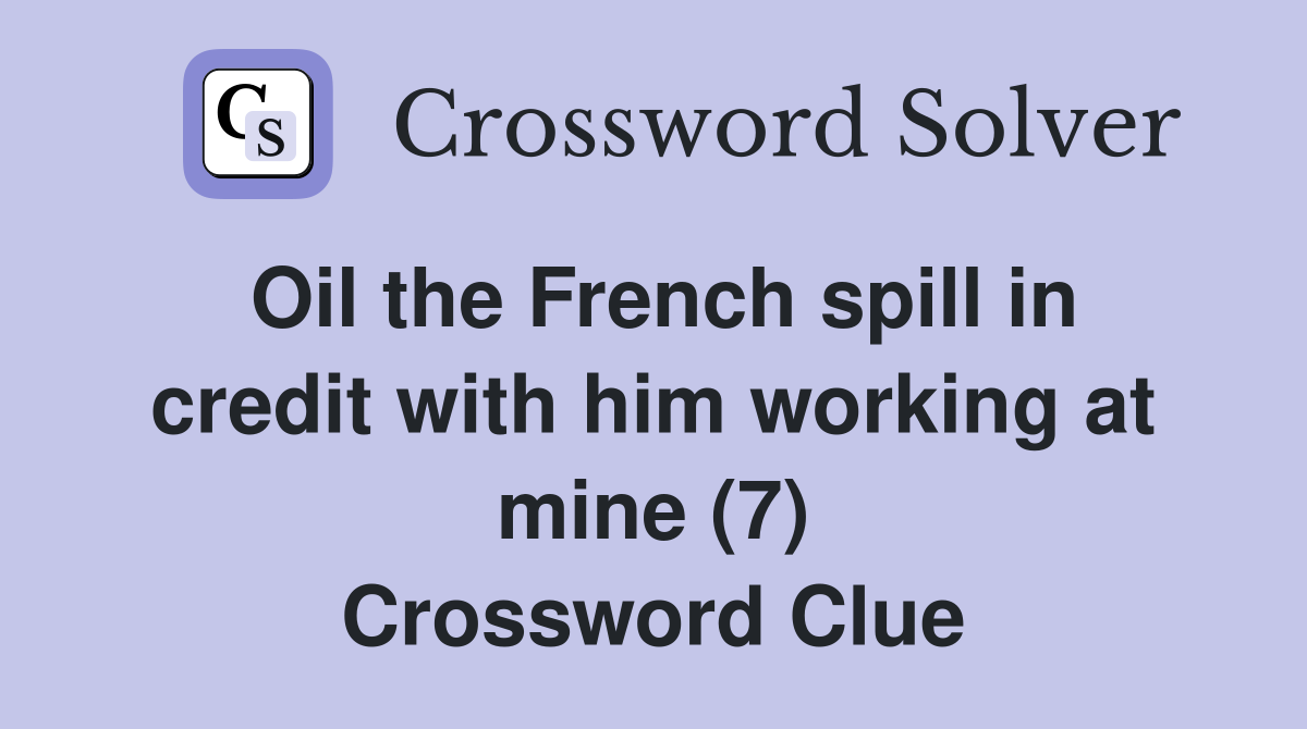 Oil the French spill in credit with him working at mine (7) Crossword
