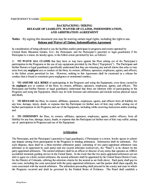 Fillable Online BACKPACKING / HIKING RELEASE OF LIABILITY WAIVER OF