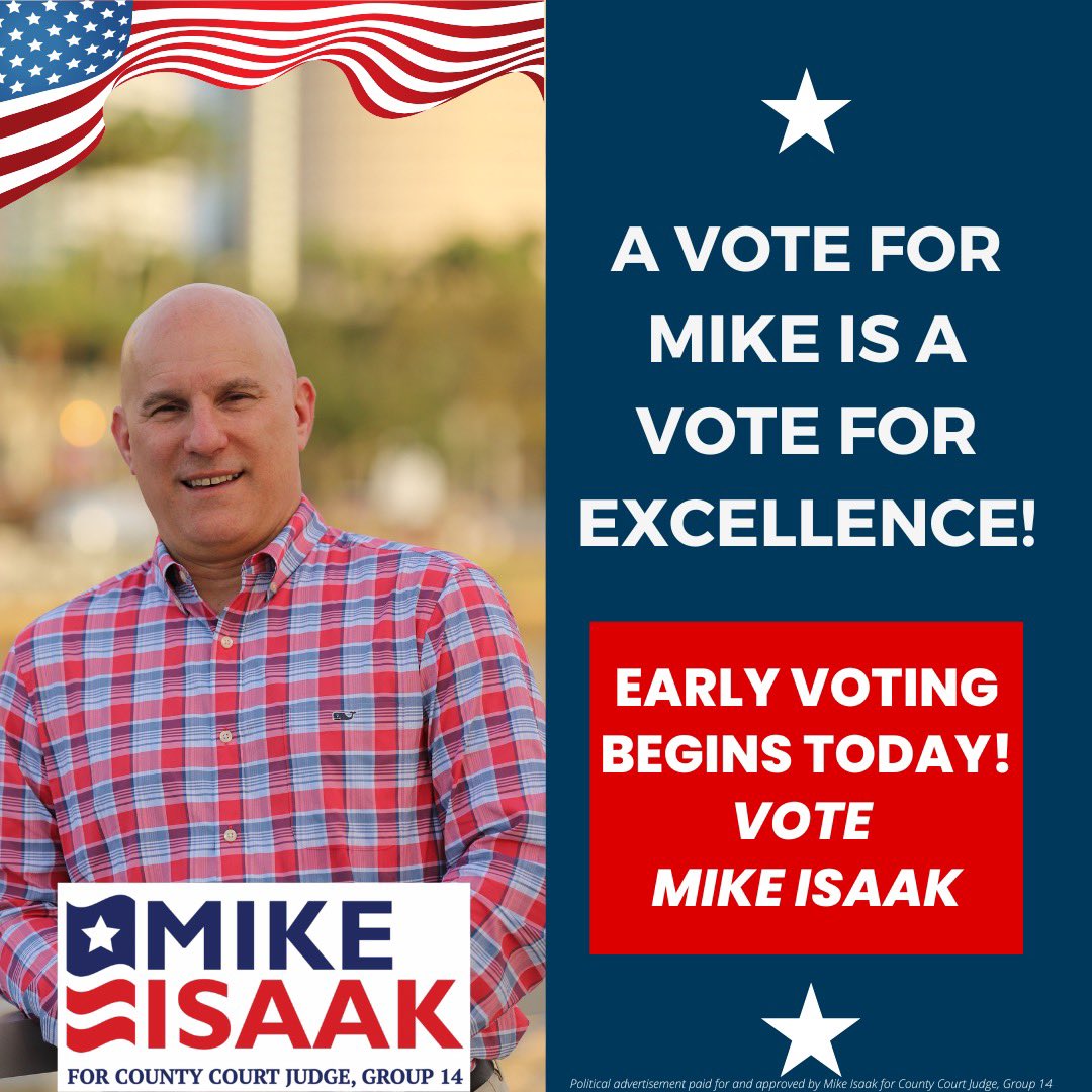 Vote Mike Isaak for Judge on Twitter: quot Early voting starts today and