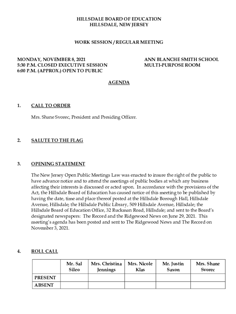 Unanimous BOE seats Donatello names Klas president Pascack Press