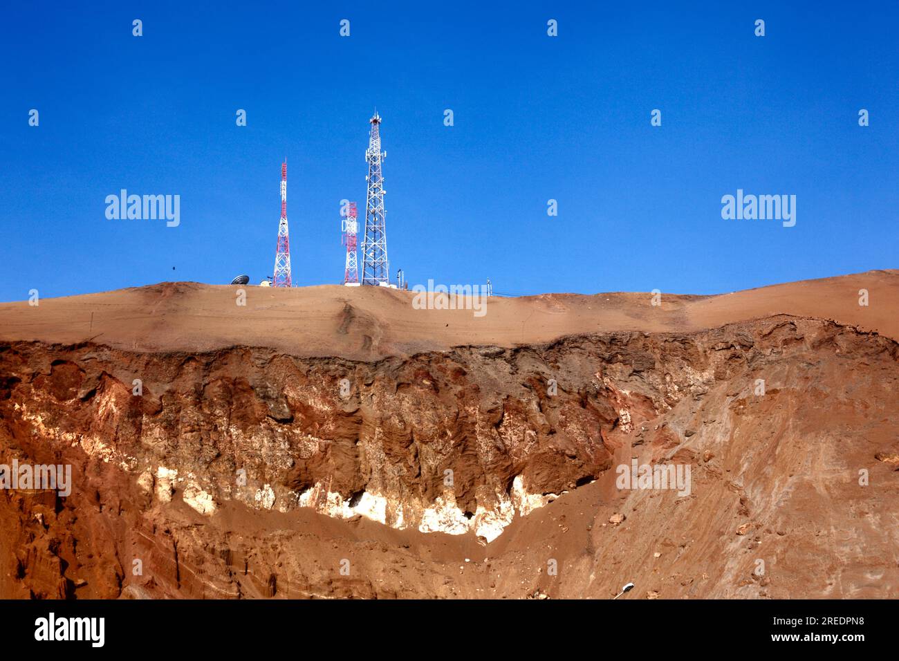 Mobile phone / radio masts and rock strata on Cerro El Morro Gordo