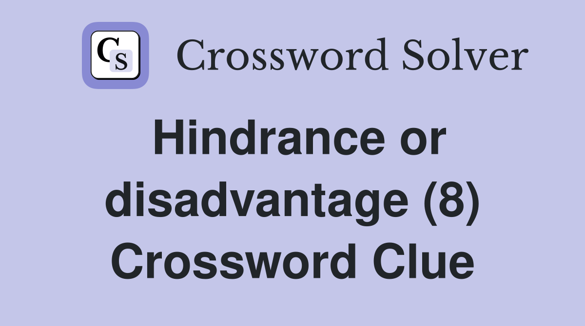 Hindrance or disadvantage (8) Crossword Clue Answers Crossword Solver