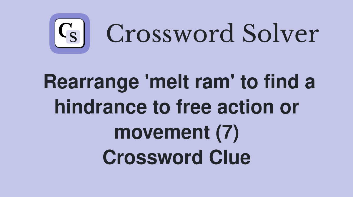 Rearrange #39 melt ram #39 to find a hindrance to free action or movement (7