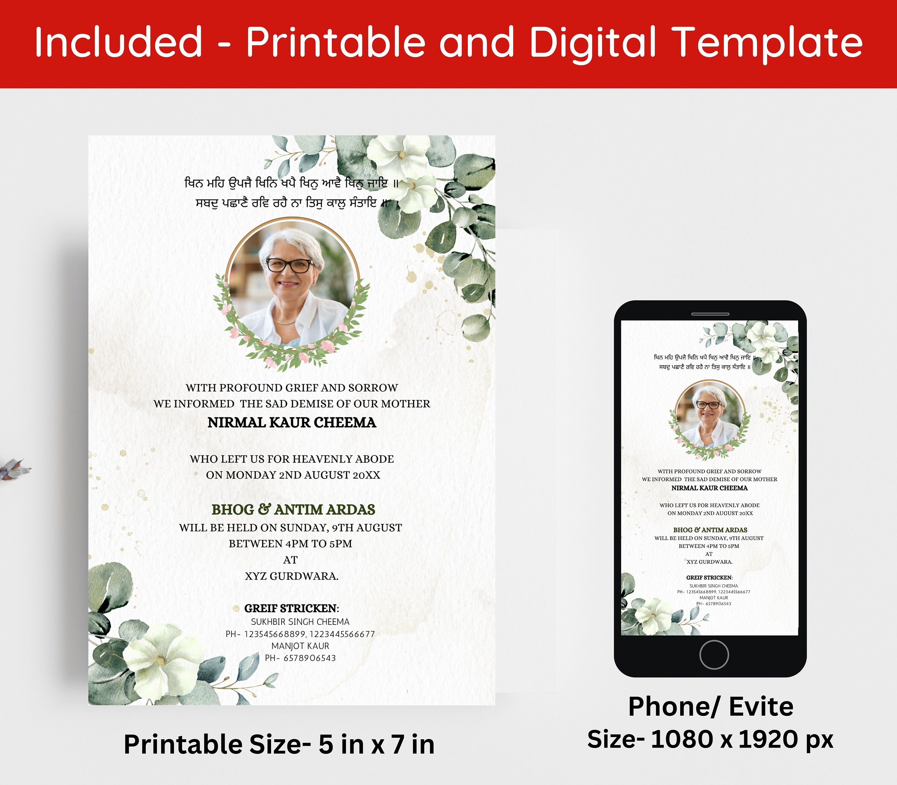 Editable Sikh Funeral Invite Digital Sikh Funeral Invitation Hindu