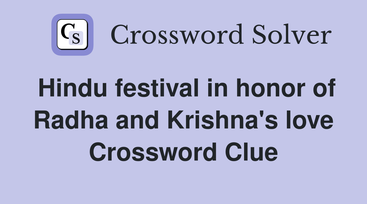 Hindu festival in honor of Radha and Krishna #39 s love Crossword Clue