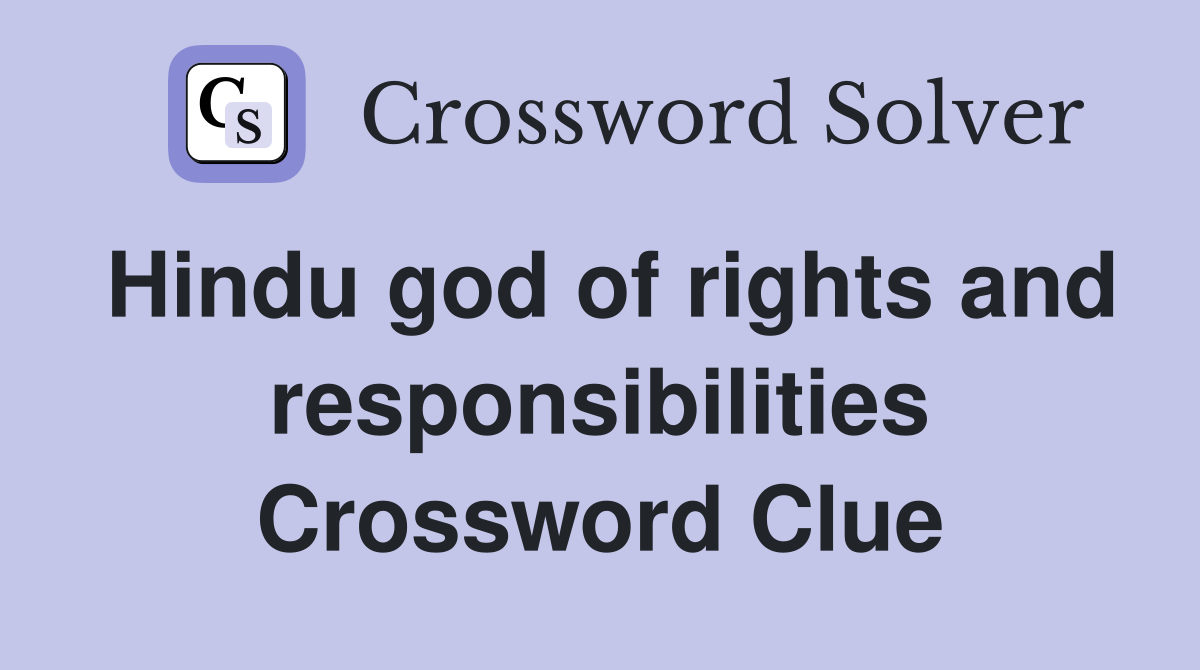 Hindu god of rights and responsibilities Crossword Clue Answers