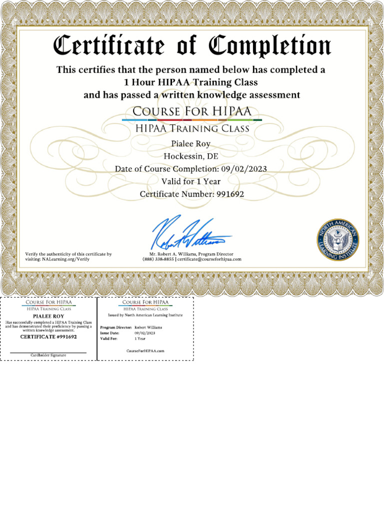 HIPAA Certificate 2023 PDF