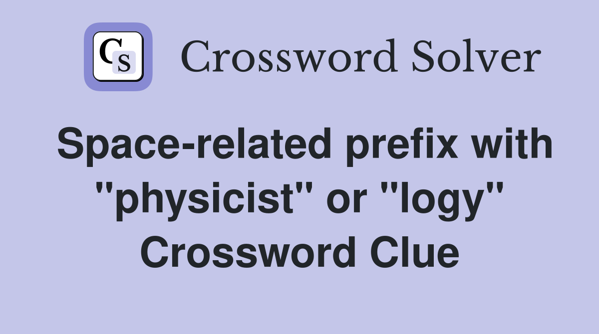 Space related prefix with quot physicist quot or quot logy quot Crossword Clue