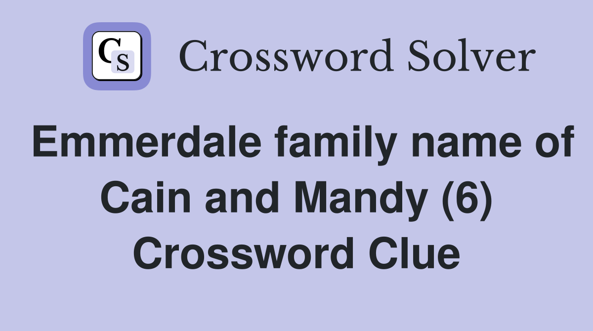 Emmerdale family name of Cain and Mandy (6) Crossword Clue Answers