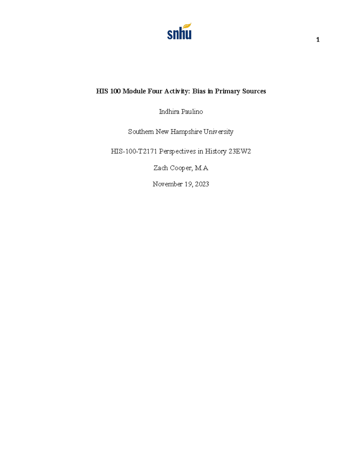 4 1 Activity Bias in Primary Sources HIS100 pdf HIS 100 Module Four