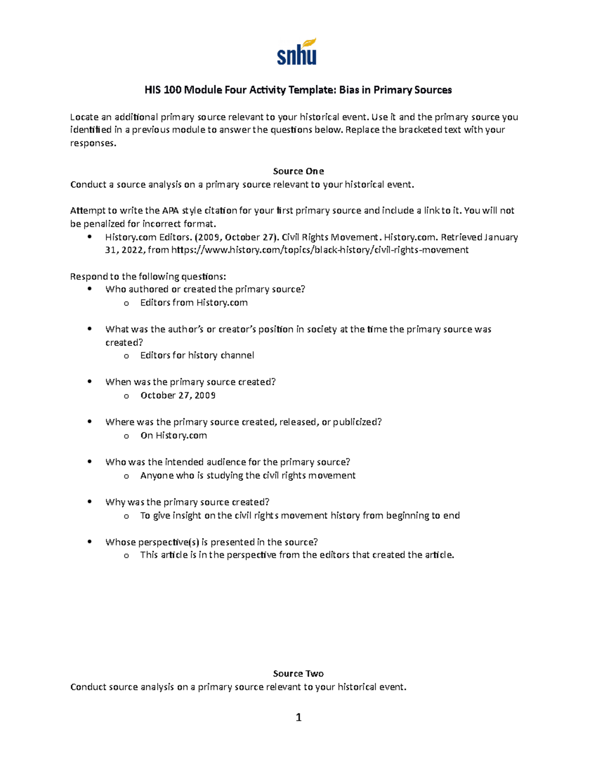 Here are some of the images for His 100 Module Four Activity Template Bias In Primary Sources that we found in our website database.