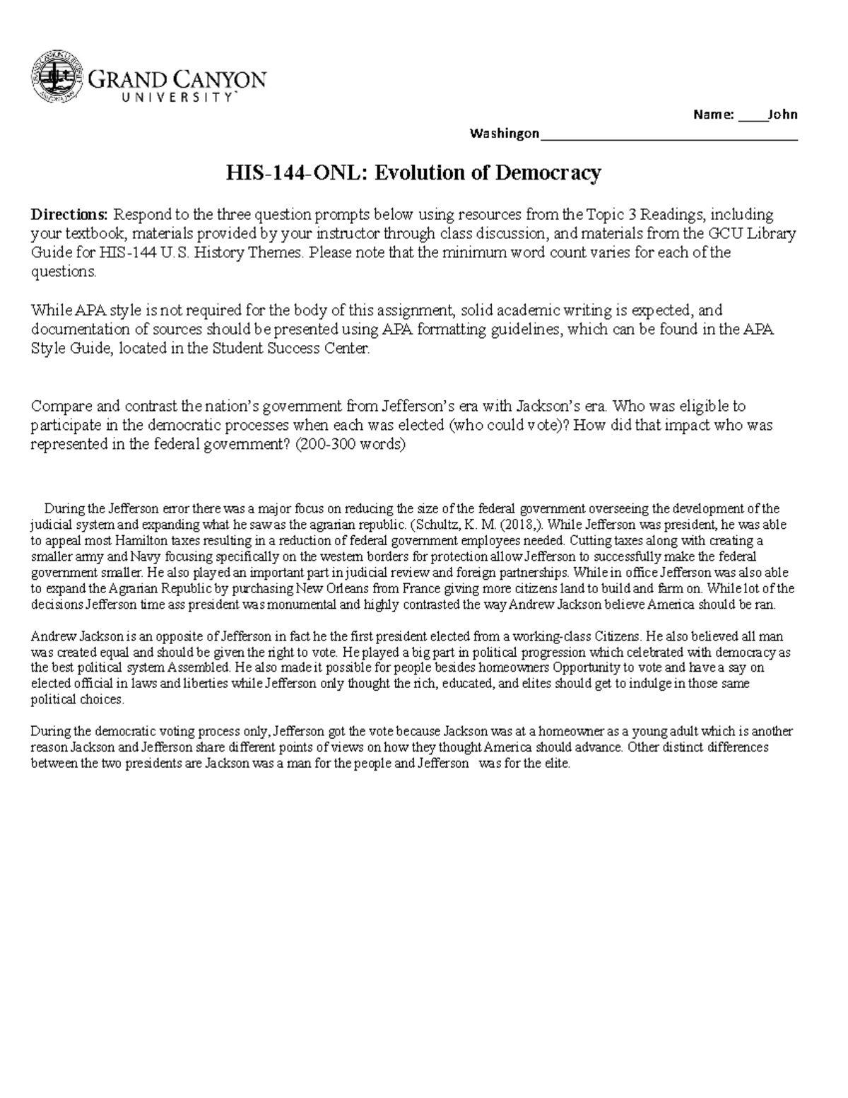 HIS 144^ Evolution of Democracy Name: HIS 144