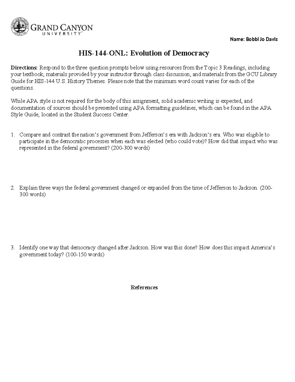HIS 144 T 3 Evolution of Democracy Worksheet Hist 144 GCU Studocu