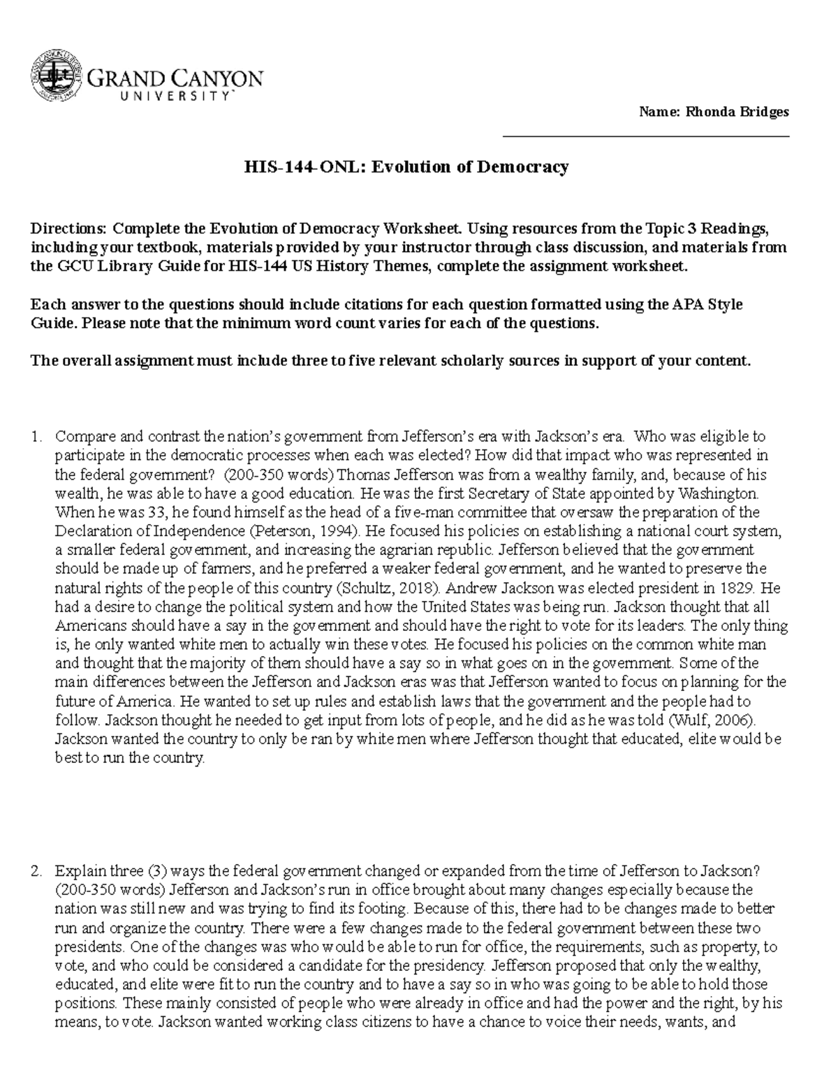 HIS 144 RS Evolution of Democracy Worksheet HIS 144 GCU Studocu