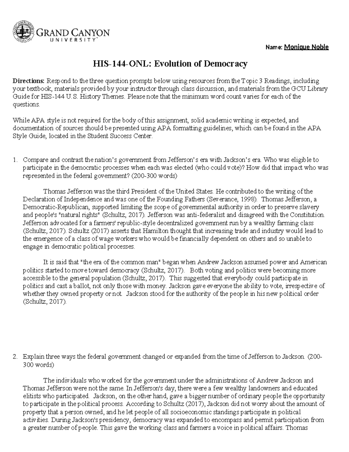 HIS 144 T3 HIS 144 evolution of democracy assignment Name: Alicia
