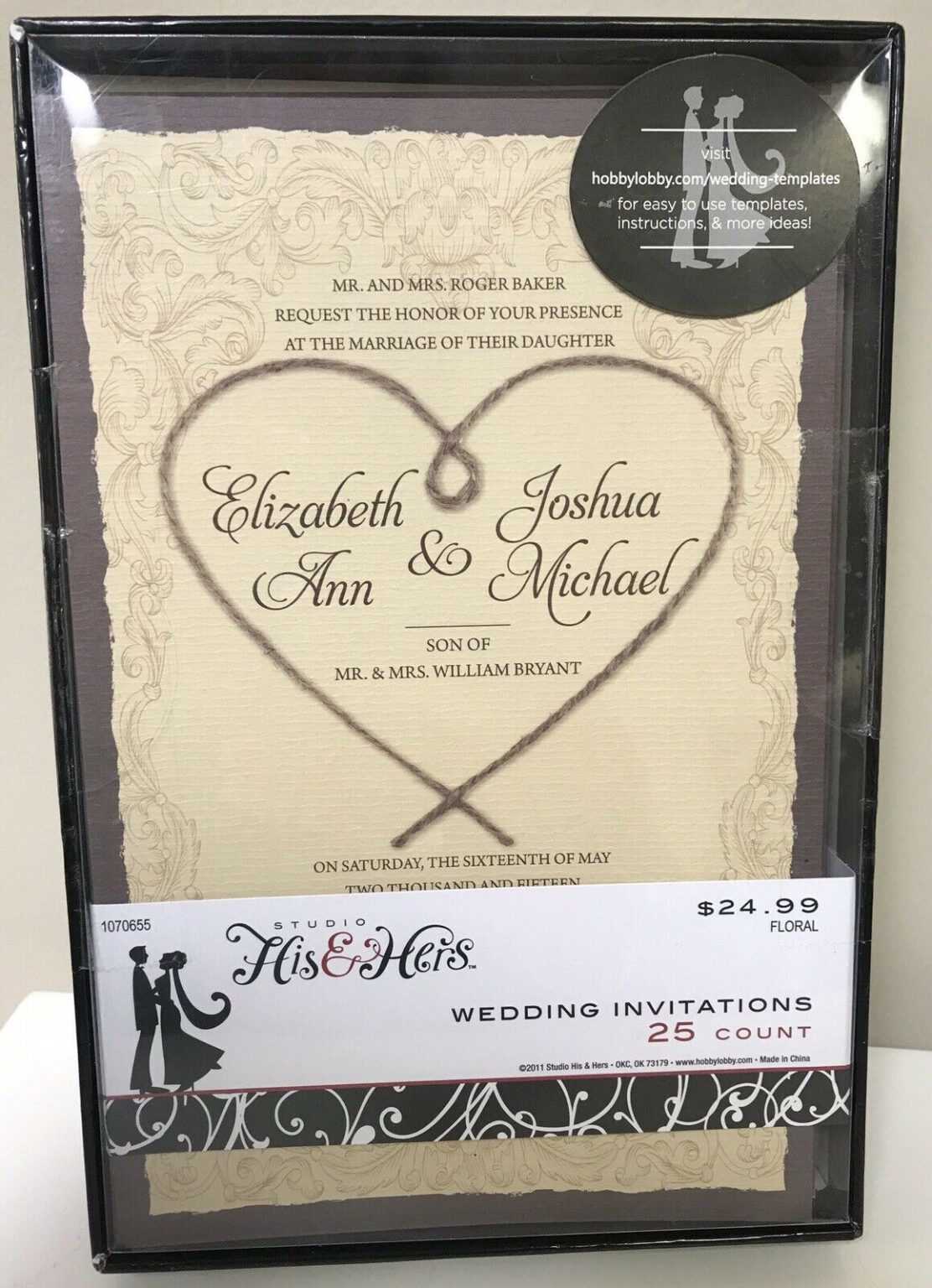 His Hers 25 Printable Hobby Lobby Invitations Craft Brown Heart