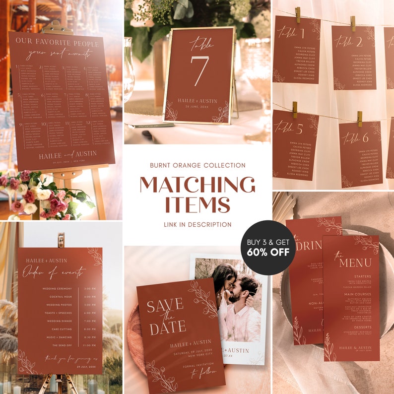 Burnt Orange Wedding Signature Drinks Sign Template Terracotta Wedding