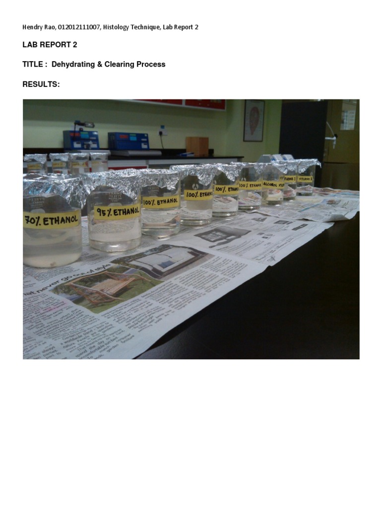Histo Tech Lab Report 2 Fixation (Histology) Histology