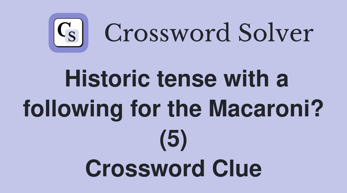 Historic tense with a following for the Macaroni? (5) Crossword Clue