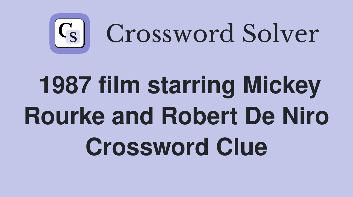 1987 film starring Mickey Rourke and Robert De Niro Crossword Clue