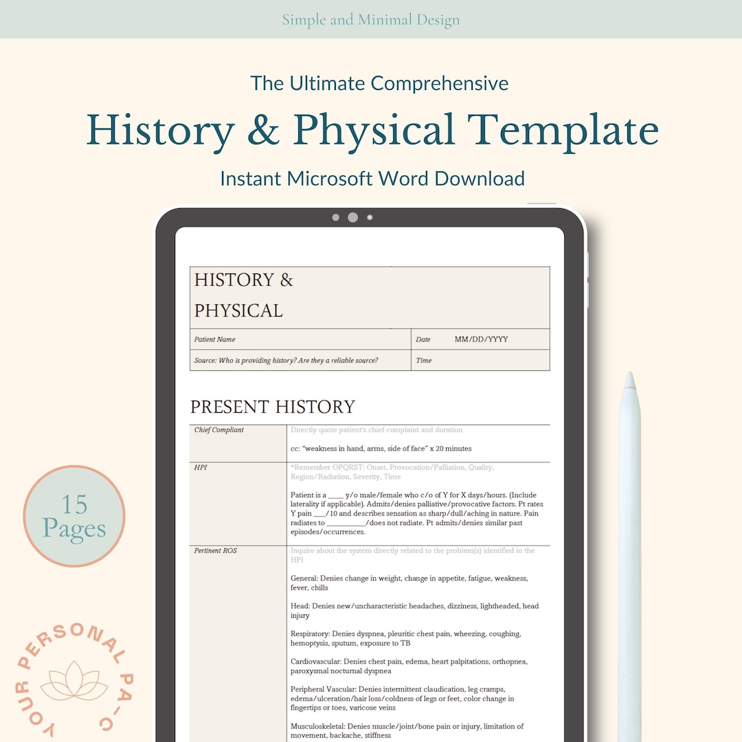 History and Physical Template Etsy