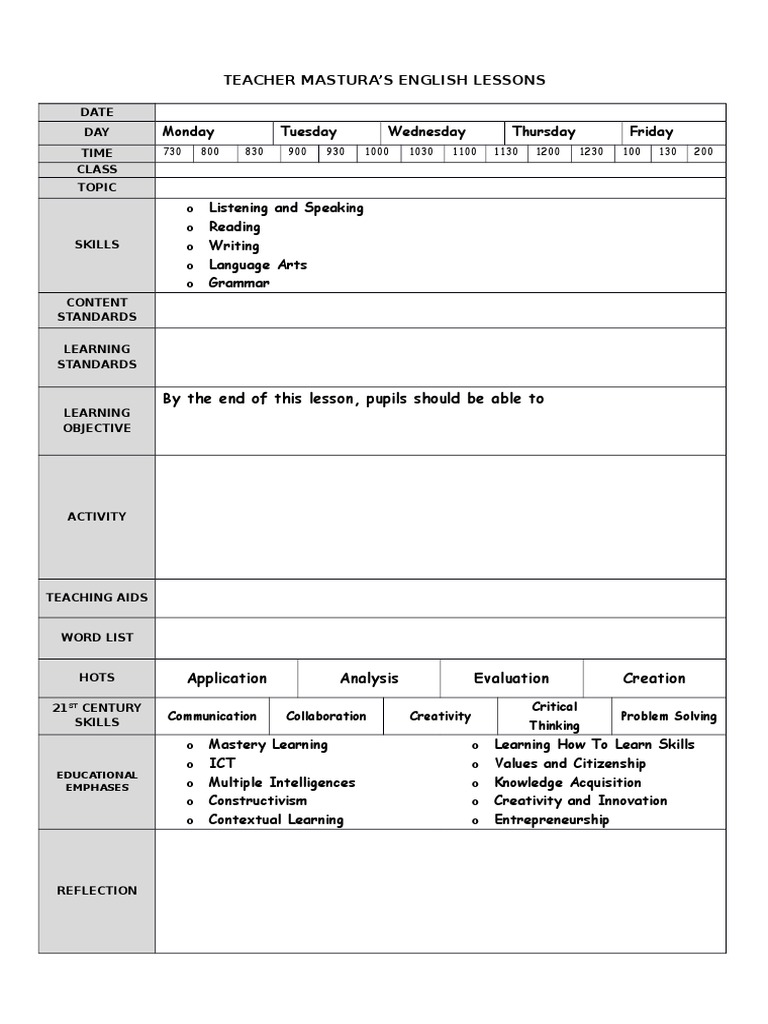 Daily Lesson Plan Template Fotolip