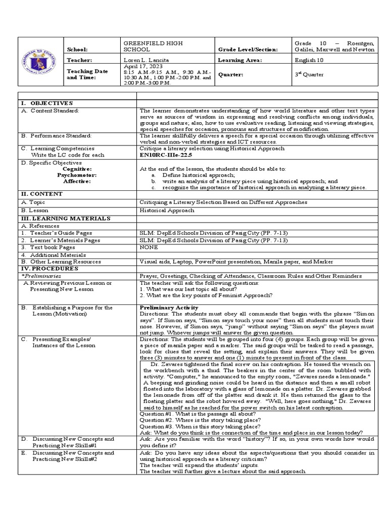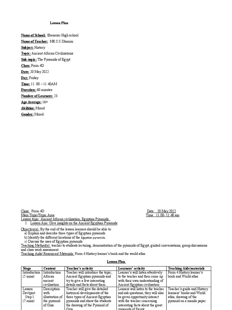 History Lesson Plan PDF Lesson Plan Educational Assessment