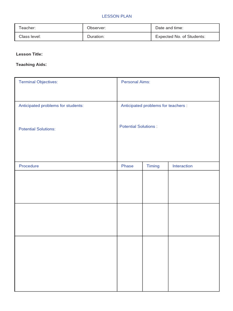 TEFL Lesson Plan Template
