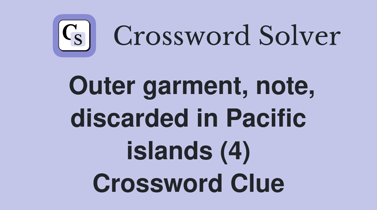 Outer garment note discarded in Pacific islands (4) Crossword Clue