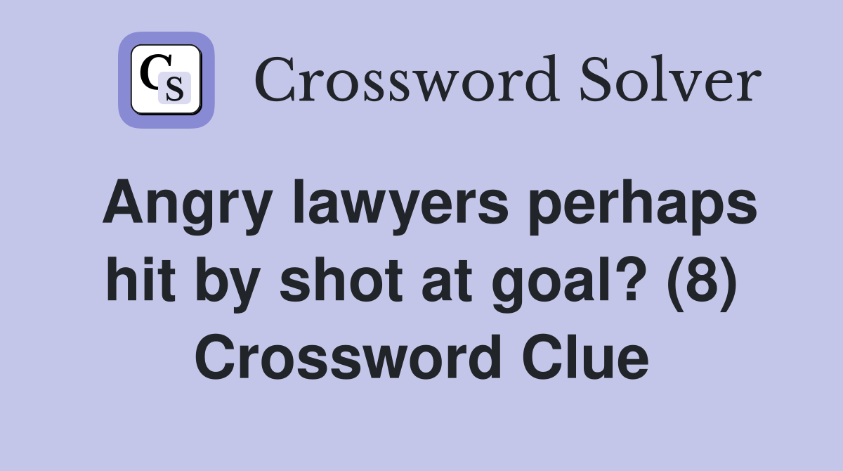 Angry lawyers perhaps hit by shot at goal? (8) Crossword Clue Answers