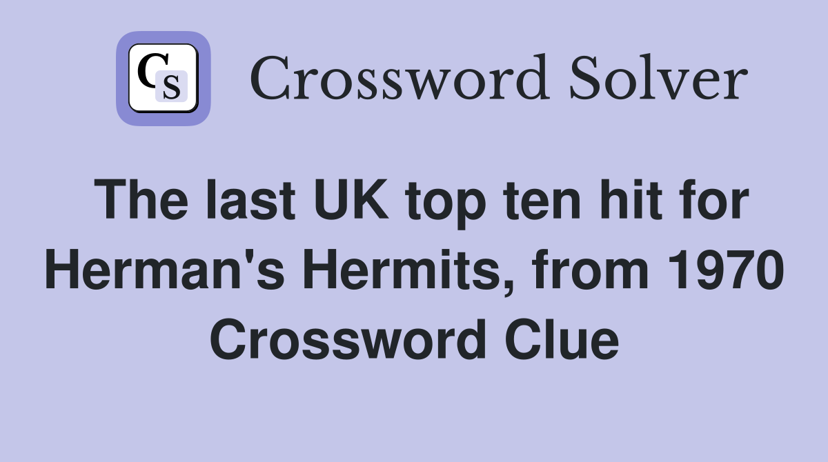 The last UK top ten hit for Herman #39 s Hermits from 1970 Crossword