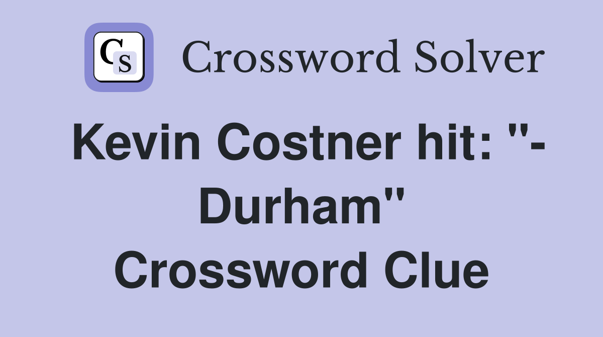 Kevin Costner hit: quot Durham quot Crossword Clue Answers Crossword Solver