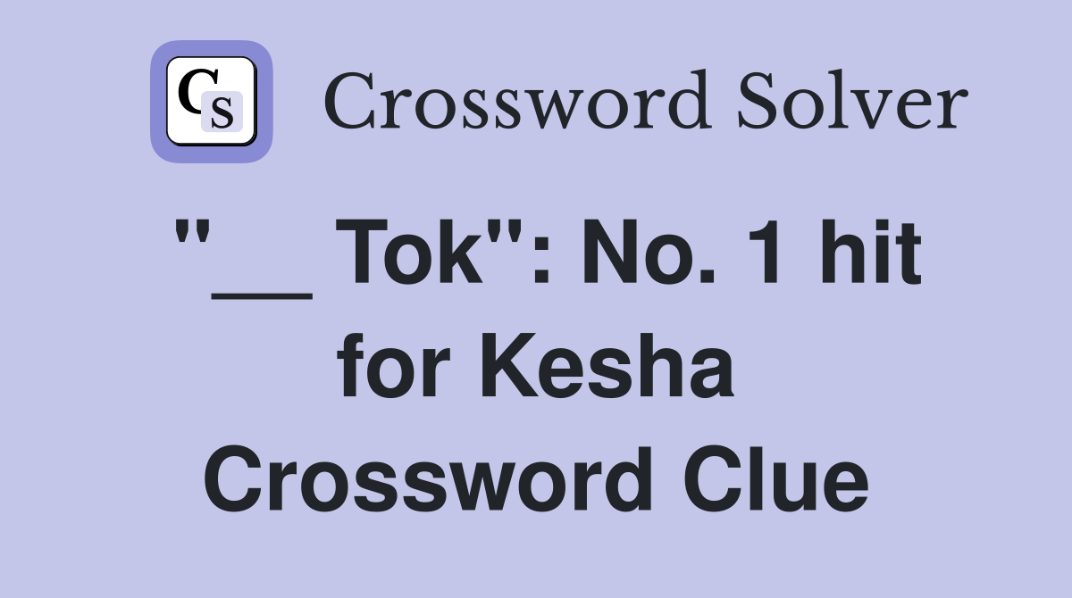 Tok quot : No 1 hit for Kesha Crossword Clue Answers Crossword Solver