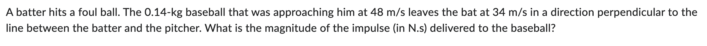 Solved A batter hits a foul ball The 0 14 kg baseball that Chegg com