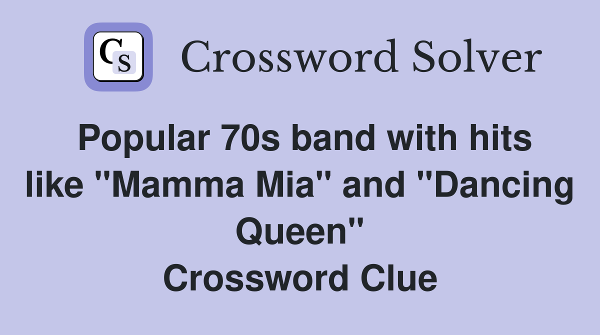 Popular 70s band with hits like quot Mamma Mia quot and quot Dancing Queen