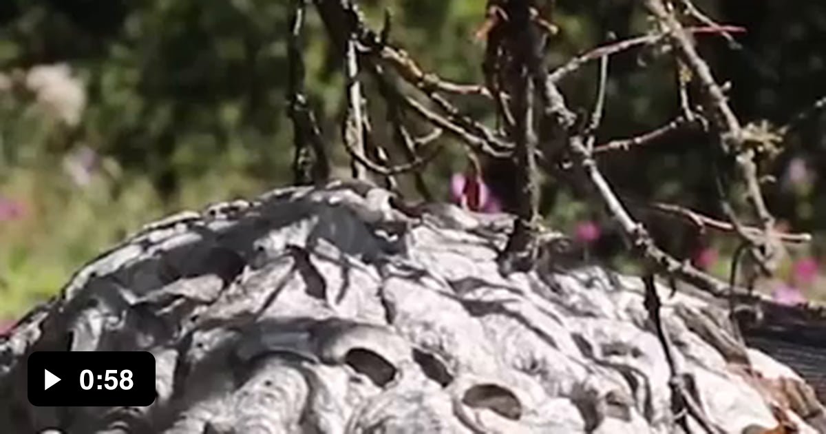 Inside the walls of a hornet hive are hexagonal combs and lots of angry